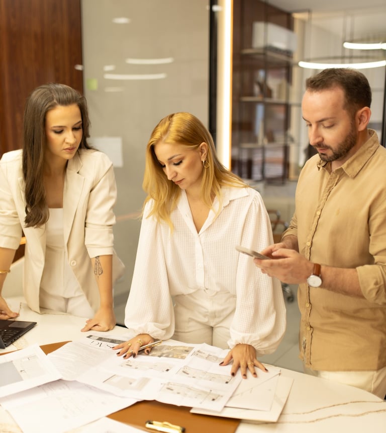 Cuidamos do acompanhamento da obra para que o que foi projetado seja, de fato, bem executado. Monitoramos prazos, custos e qualidade, alinhando equipe, fornecedores e cliente.