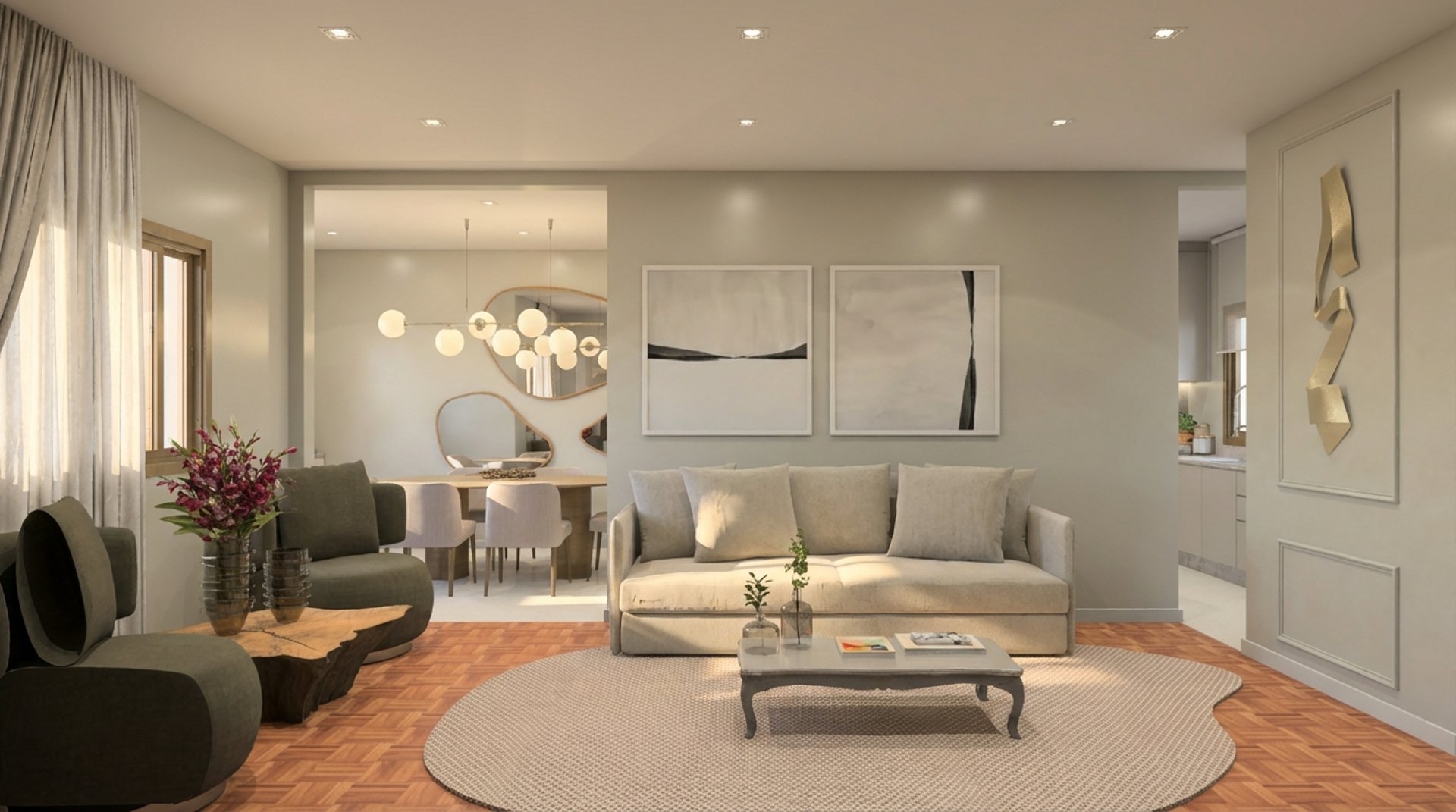 Transformamos uma casa já muito vivida em um lar novamente acolhedor, funcional e com “cara de casa”, sem grandes demolições. Mantivemos a estrutura existente, otimizamos recursos e trabalhamos com marcenaria enxuta, redistribuição do mobiliário e uma paleta neutra com elementos naturais. O resultado é uma reforma consciente, que valorizou o imóvel e devolveu à cliente o sentimento de pertencimento ao próprio espaço.
